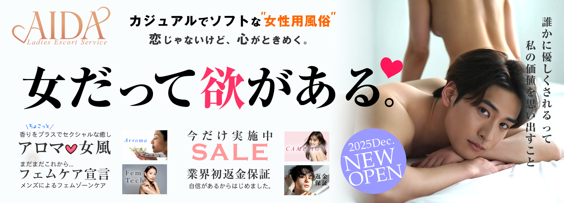 女性用風俗業界がどんなものなのか?未経験の方に向けて、業界の概要やAIDAで働く魅力をご紹介しています。